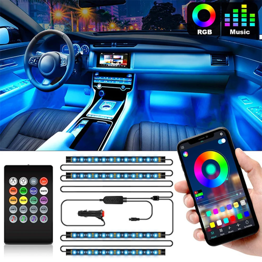 Two control way: Car interior lights with two control way, you can control the led strip lights by app and remote. Remote can avoid the problem of poor connecting. The APP of car led strips don't be connected to data, it's Bluetooth only.