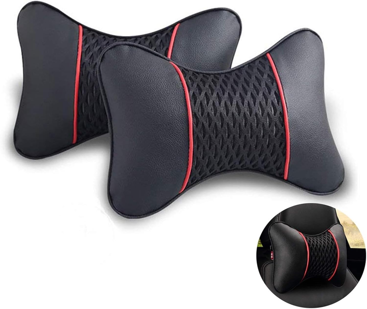 - 【Breathable Material】: The car neck pillow is made of high-quality PU leather and polyester material, which is comfortable to hand, and there are many ventilation holes on the outer layer, so that you will not feel stuffy in all seasons