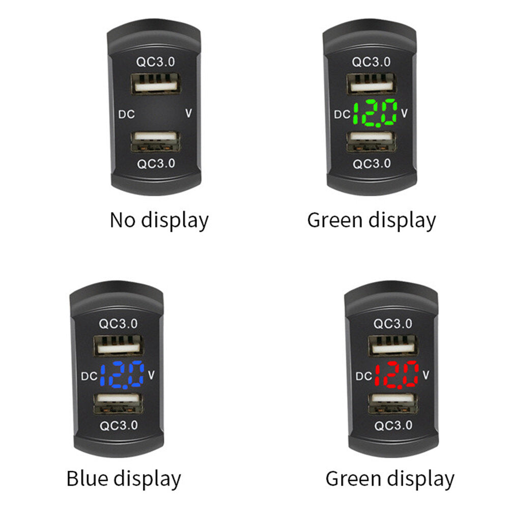 Dual USB QC3.0 Car Charger Socket Adapter Digital Display Voltmeter Tools 12-24V