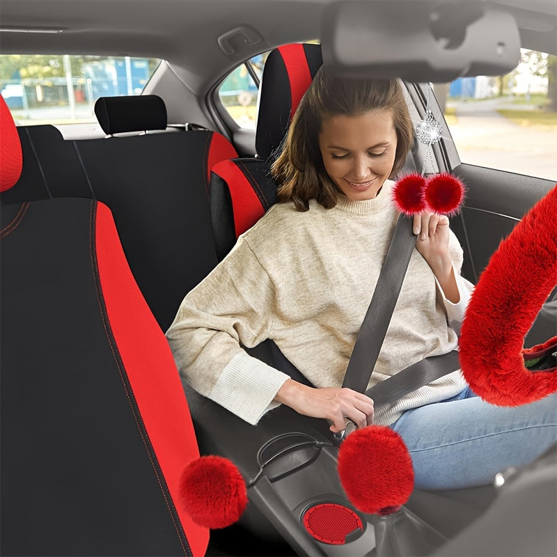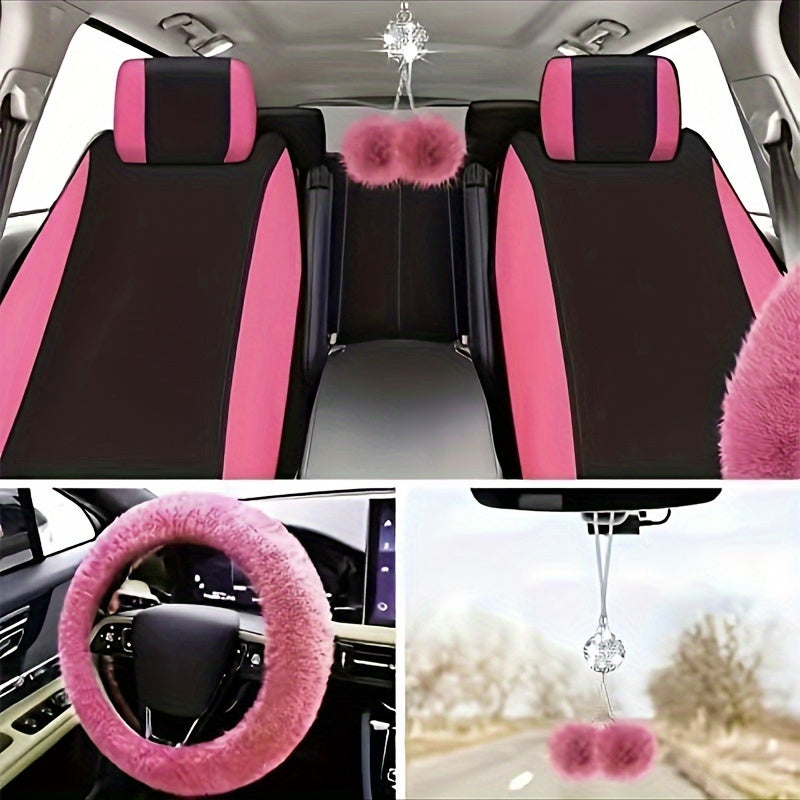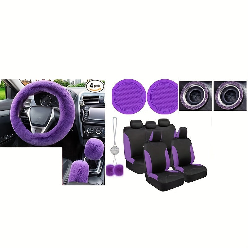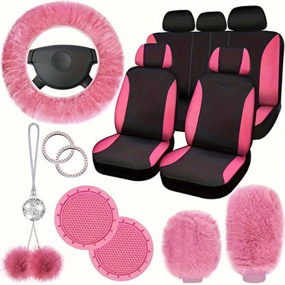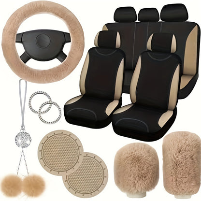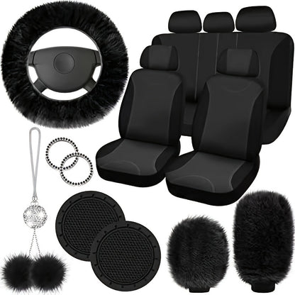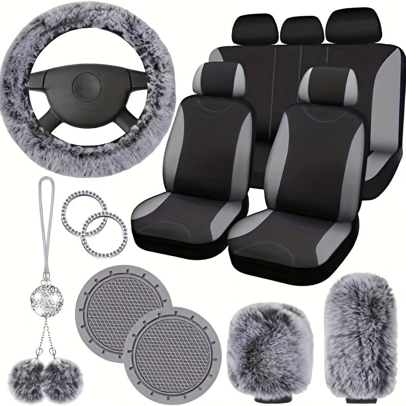 17-piece Combination Car Seat Cover Plush Pendant Steering Wheel Cover Handbrake