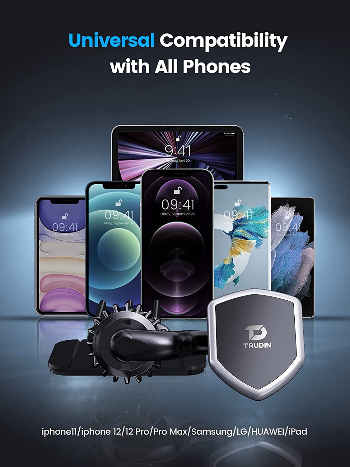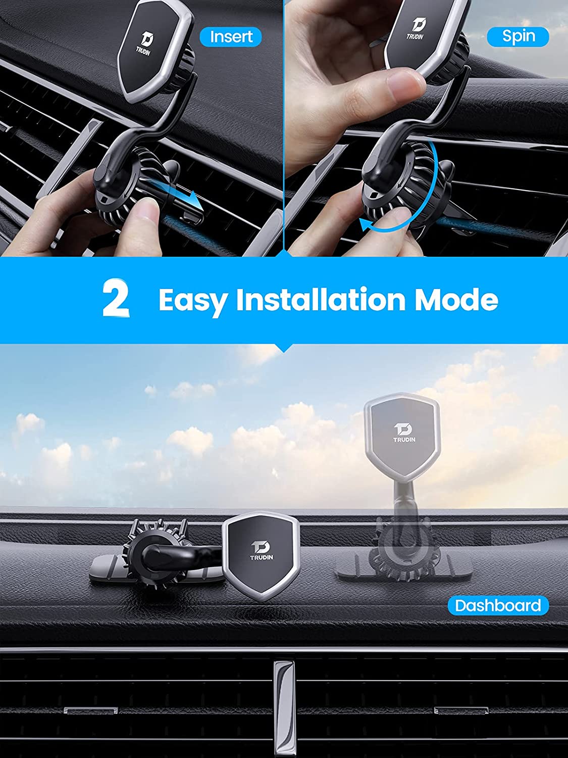 360° Free RotationThis Trudin magnetic phone holder for car allows users freely adjust any angle as they like. You can attach your phone and rotate to any angle according to your needs. |