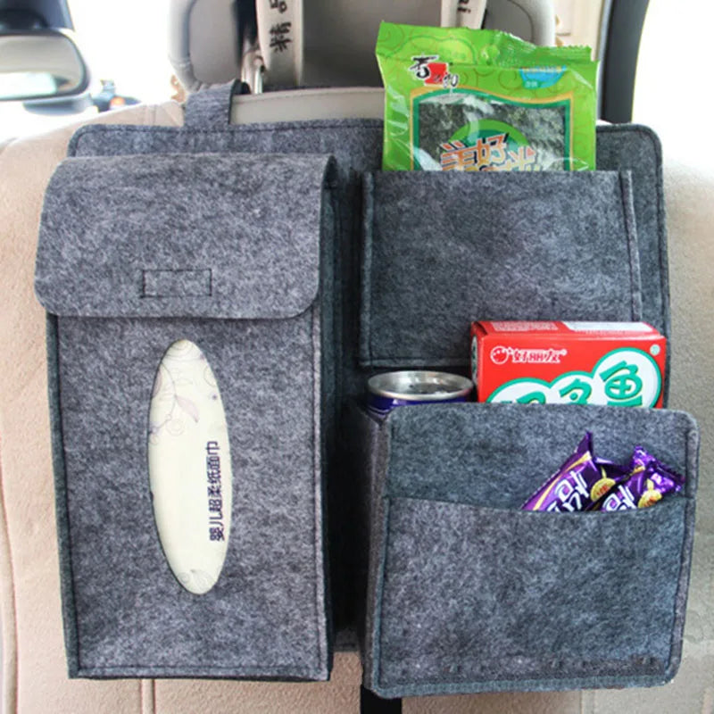 - 1. Multi-function car seat back organizer. 4 pockets for you to store magazines, tissue, CD, drinks, snacks, pen, phone4 in it.