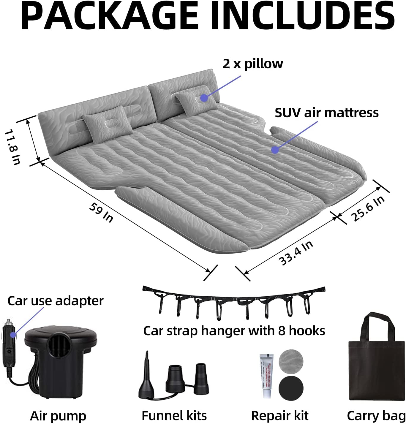 - Car strap hanger with 8 hooks and a storage bag Used in Various Occasion : Inflatable mattress air bed with 6 chamber design. You can use it as sleeping bed or for SUV trunk, car backseat, also can use it for camping in tent, travel, beach, functional and convenient.