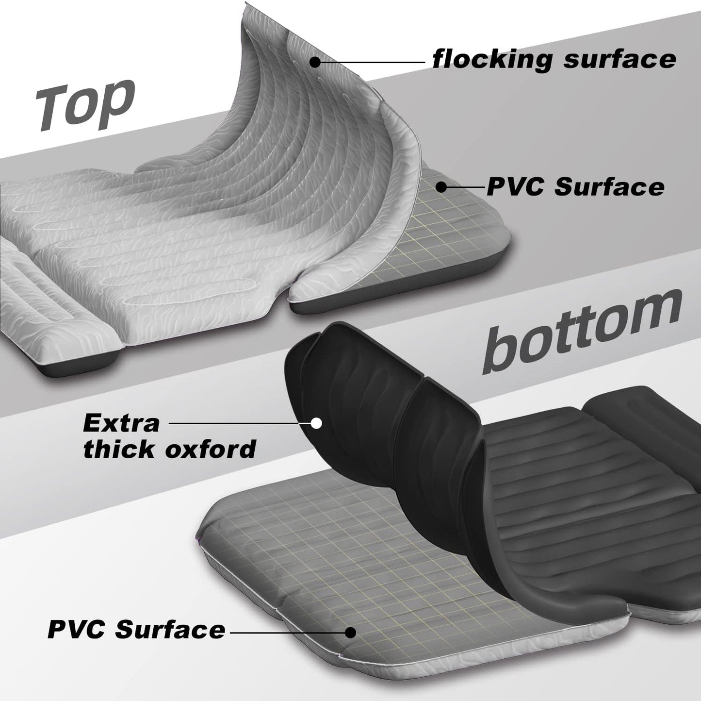 - The top of Umbrauto inflatable car mattress are made by soft flocking which is 6P environmental protection, thickness 38UM, 58P PVC material, cold resistant 25 degree, composite breathable.