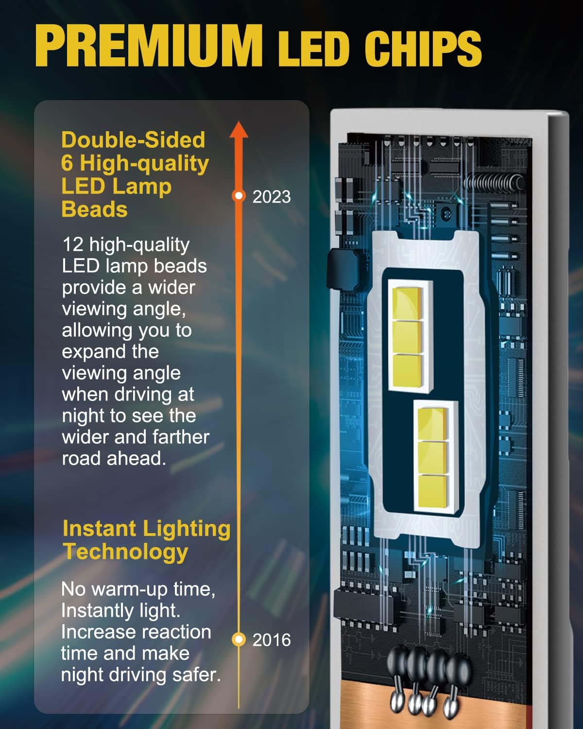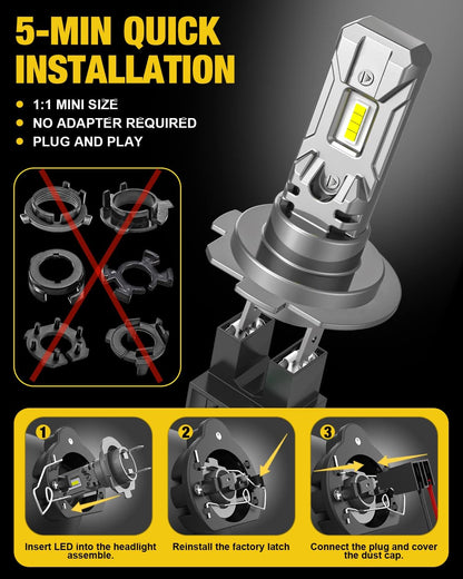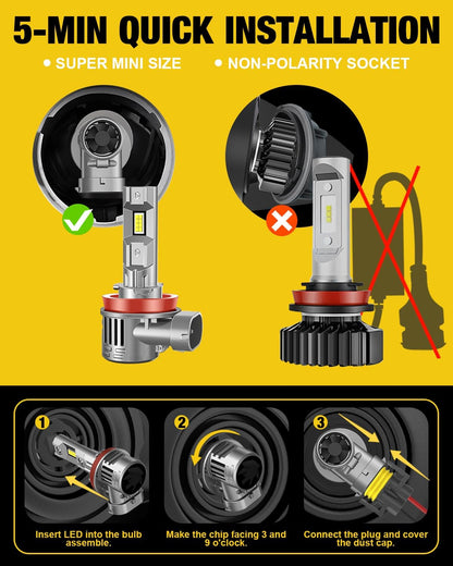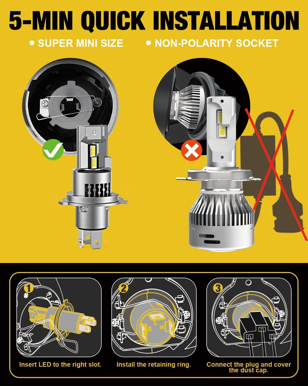 【Easy & Hassle-free Installation】All-in-one 9003 Headlight Bulb. No bulky base, no external driver, no professionals needed. Real plug and play, smoothly fit into the vehicle's housing and factory sockets even with limited space in the headlight housing and install the dust cover as you like without worries.