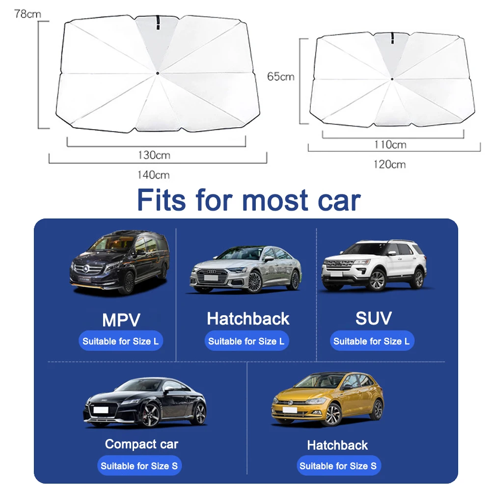 - Automotive car sun umbrella can effectively protect you from sunlight and provide you with a cool driving environment, keep the seats and dashboard from cracking due to sun exposure.