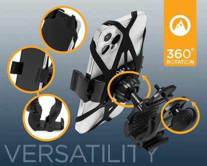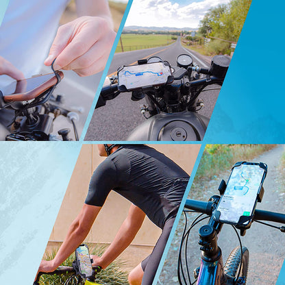 - SAFE: From mountain bikes to motorbikes, our premium motorcycle phone mount allows you to safely secure your device using two points of contact, a premium plastic grip, and a silicone net.