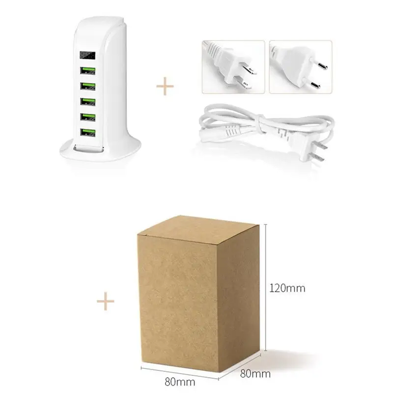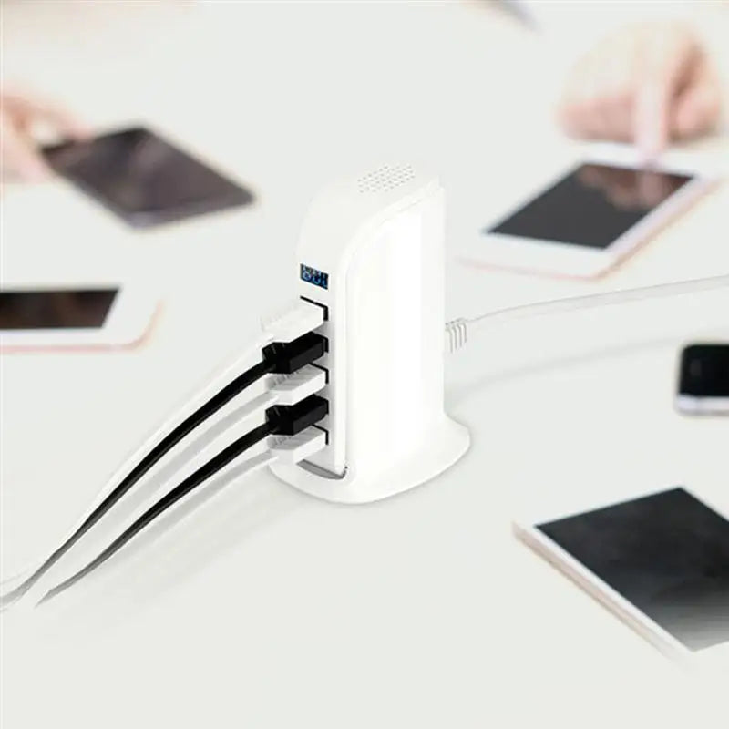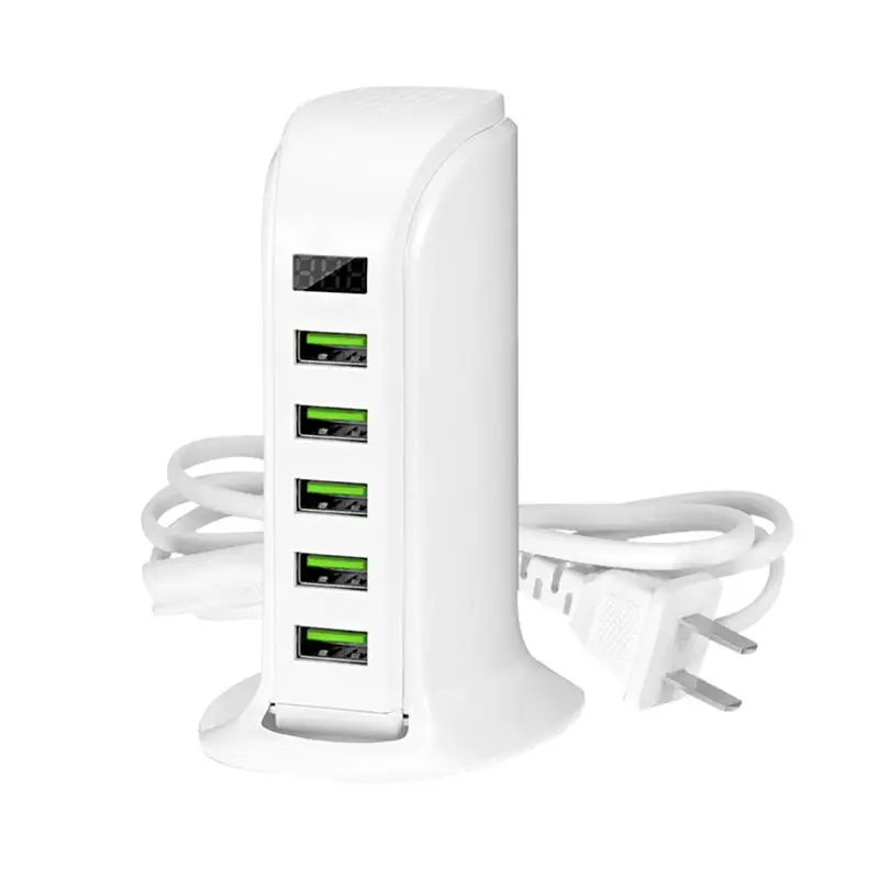 5 Ports USB Charger Multi Ports Adapter Smart Digital Display Charger Hub Extension US EU UK Plug Cable